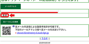 または、登録用HPアドレスへアクセスし、空メール送信