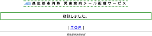 | 災害案内メールとは、長生郡市広域市町村圏組合消防本部管内の市町村(茂原市、一宮町、睦沢町、長生村、白子町、長柄町、長南町)ならびに千葉県外房有料道路、九十九里有料道路、圏央道、千葉東金道における火災などの災害発生情報等を電子メール(携帯電話・パソコン)にて配信するサービスです。 |