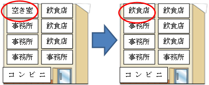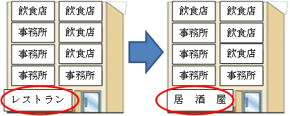 ③テナントが入れ替わる 例:レストラン→居酒屋に ![]() |