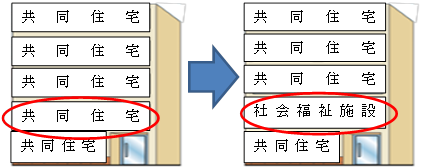 ②用途を変更して使用 例:共同住宅→社会福祉施設 ![]() |