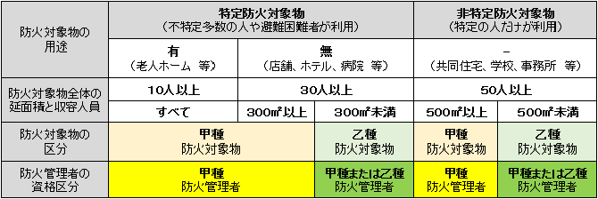 防火管理者の資格区分