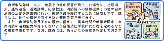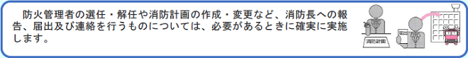 | ① | 「防火管理に係る消防計画」の作成および消防長への提出。 | ![]() |