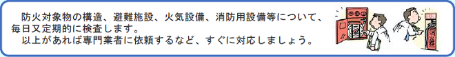 | ③ | 消防の用に供する設備等の点検と整備。 | |