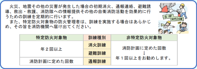 | ② | 消火、通報及び避難訓練の実施と届出。 | |