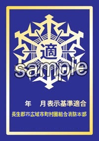 | 「適マーク」には金色と銀色の2種類があります。 消防本部で審査をした結果、表示基準に適合していると認められた場合は、銀色の適マークが交付されます。 その後、3年間継続して基準に適合していると認められた場合は、金色の適マークが交付されます。 |