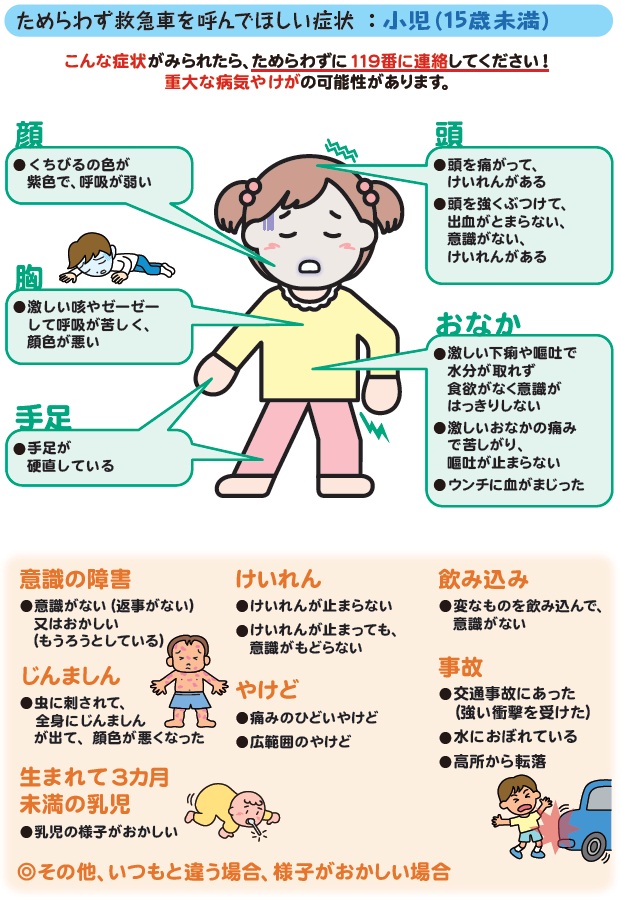 | Q: | 救急車を呼んだ方がいいのか分からないんだけど・・・ | |||