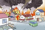 | 地震による被害には、建物などの倒壊、火災、土砂崩れ、津波や液状化現象などがあります。 建物等の倒壊や土砂崩れなどにより道路がふさがれてしまうと、通れる道路が少なくなって大渋滞を発生させるため、避難や救援活動に支障が出てしまう恐れがあります。また、大きな火災が発生すると炎を巻き込んだ竜巻状の空気の渦が発生し、その火災旋風の猛烈な炎と風によって、急速かつ広範囲に延焼を引き起こします。 この他にも、線路が寸断さたり、線路が無事でも安全確認に時間がかかったり、電気・ガス・水道などのライフラインが寸断され、復旧まで時間がかかる場合があります。 |