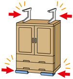 | ● | 地震の揺れで転倒・落下・移動してくるものから身を守れますか?大きな家具を固定したり、重い物や割れやすい物は低い場所に収納したりしましょう。 |