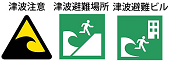 | ● | 「津波標識」を知っていますか? 「津波注意」という標識のほかにも、海の近くには「津波避難場所」や「津波避難ビル」の標識が設置されています。 |